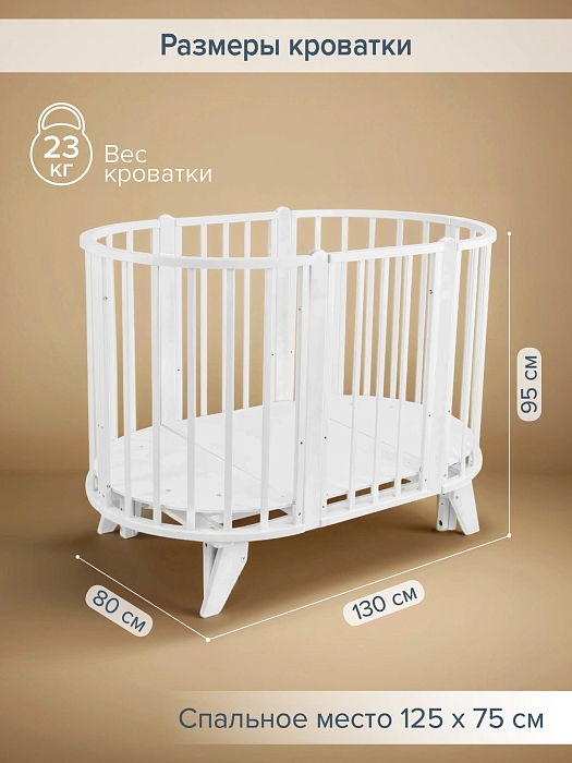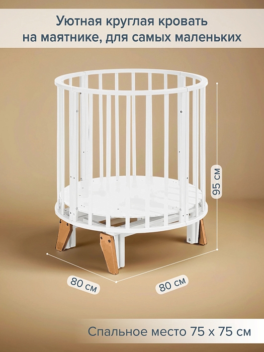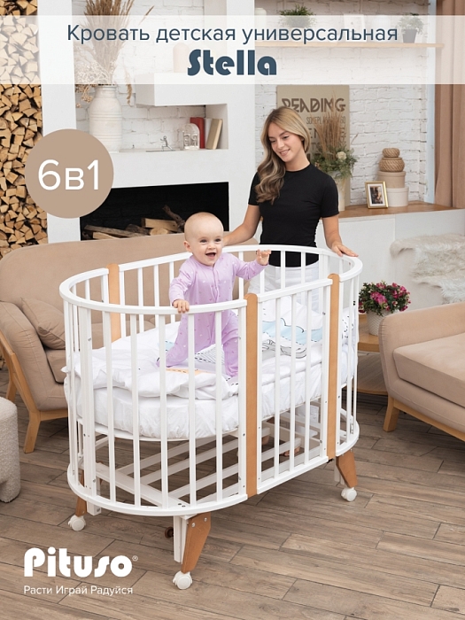 Кровать детская + маятник универсальный Pituso Stella 6 в 1 Белый-Бук
