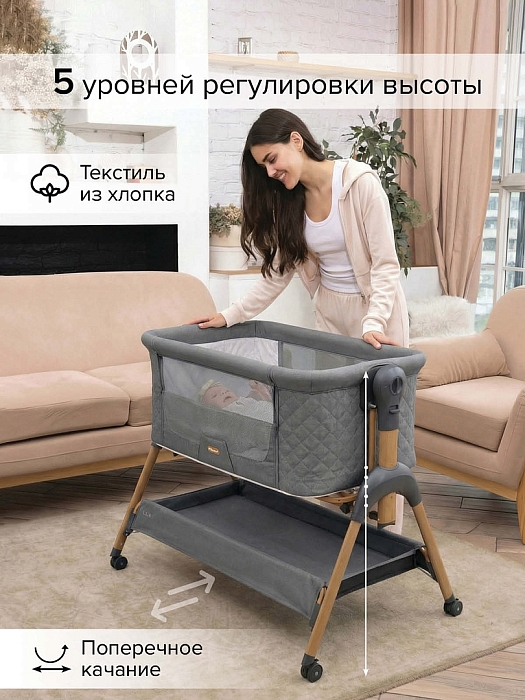 • 5 в 1: Трансформируется под любые нужды — от классической кроватки до колыбели с функцией укачивания и режимом «антисрыгивание».
