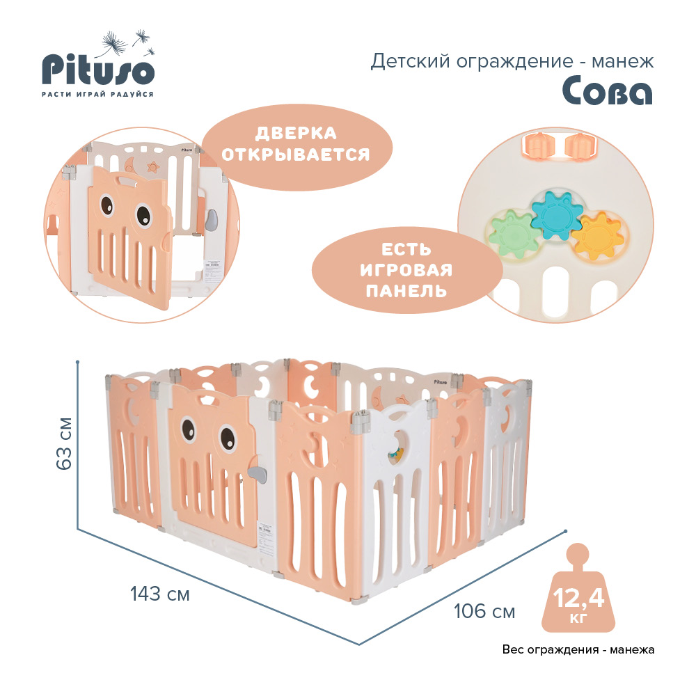 Детский манеж-ограждение Pituso Сова, Персик/белый