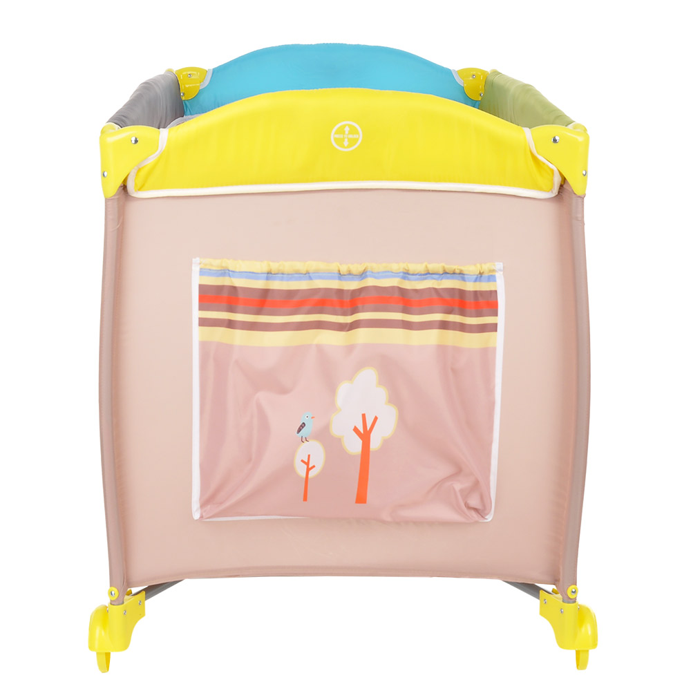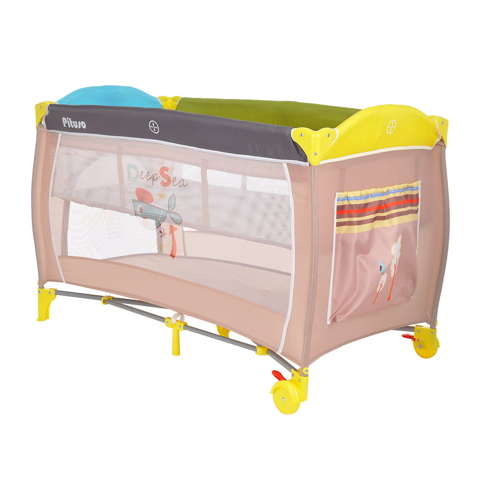 • 2 колеса с фиксаторами делают удобным перемещение манежа-кроватки по дому