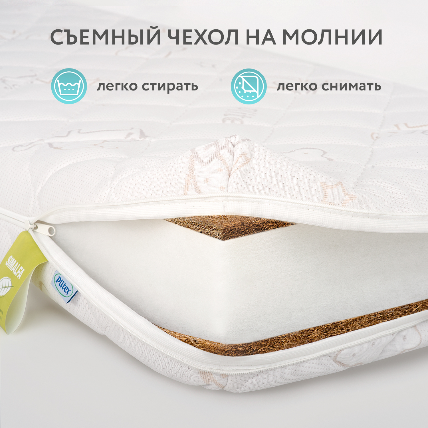 Слой латексированной кокосовой койры по обеим сторонам придает жесткость, необходимую правильному детскому матрасу.