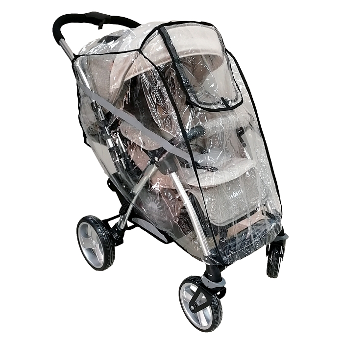 Прозрачный, прочный дождевик для прогулочной коляски, подходит и для колясок с ручкой сзади (крепление задней стороны - на липучках).