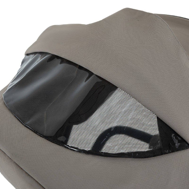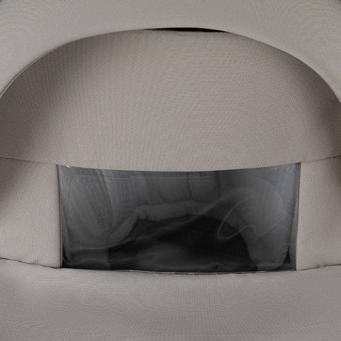 Капор люльки оборудован ручкой для переноски, имеется съемный козырек, дополнительная секция, климатическое окно под молнией в корпусе люльки и в капюшоне.