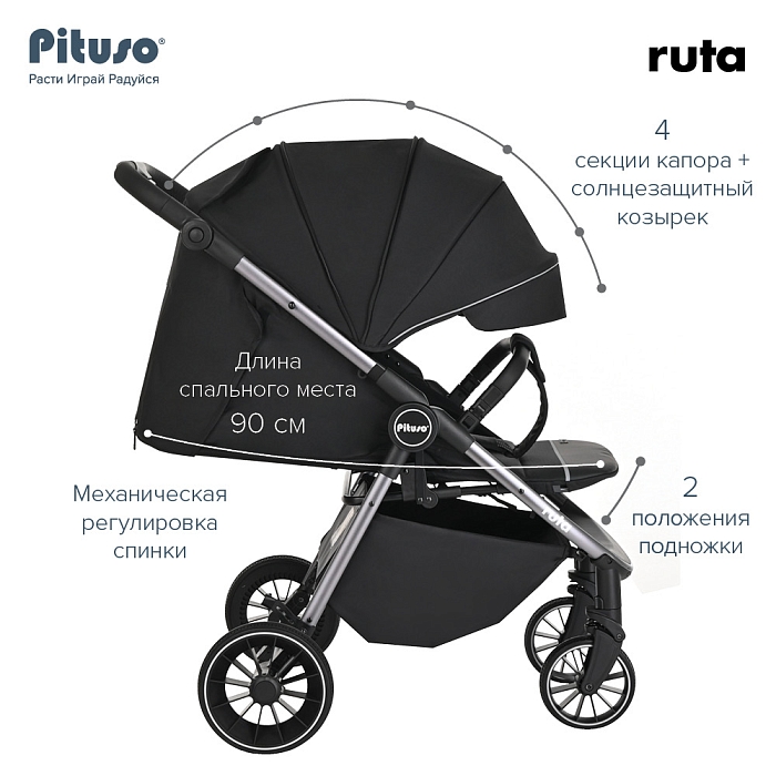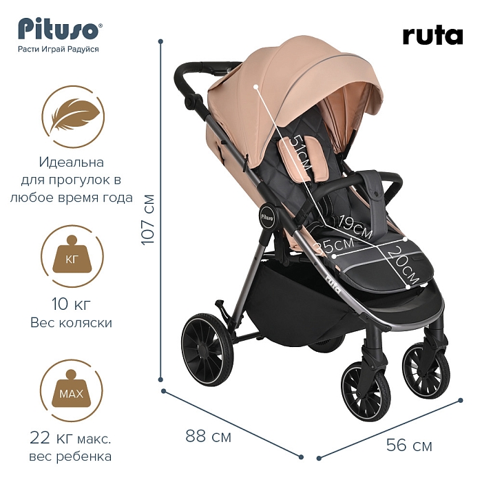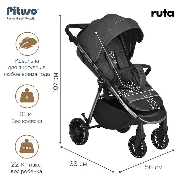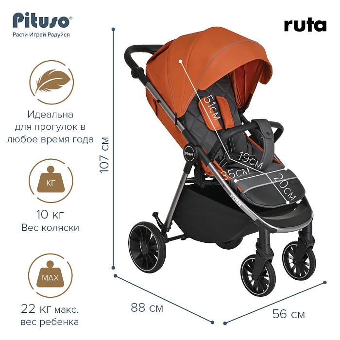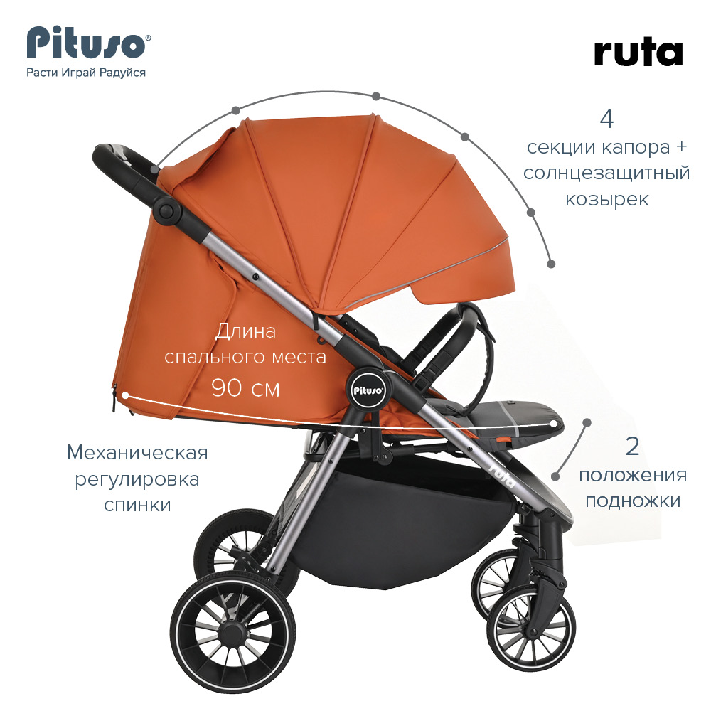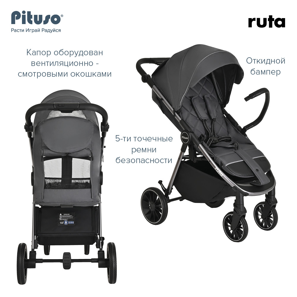 Pituso прогулочная коляска Ruta – качественная и стильная прогулочная модель, идеально адаптирована и для прогулок и путешествий на свежем воздухе, имеет надежную прочную конструкцию. Данная модель представлена в разных расцветках и влюбляет в себя с первого взгляда. Коляска имеет компактный легкий каркас. Она подарит комфорт и удобство не только ребенку, но и его маме.