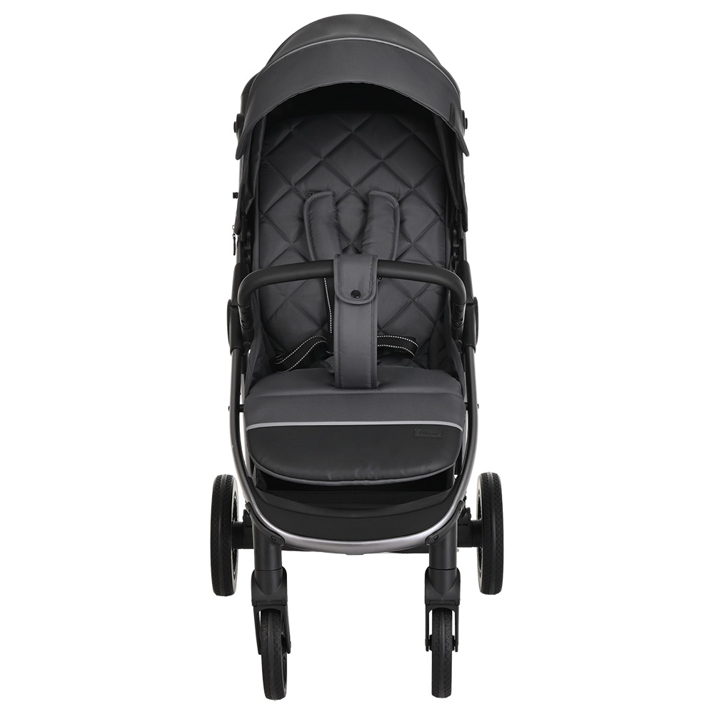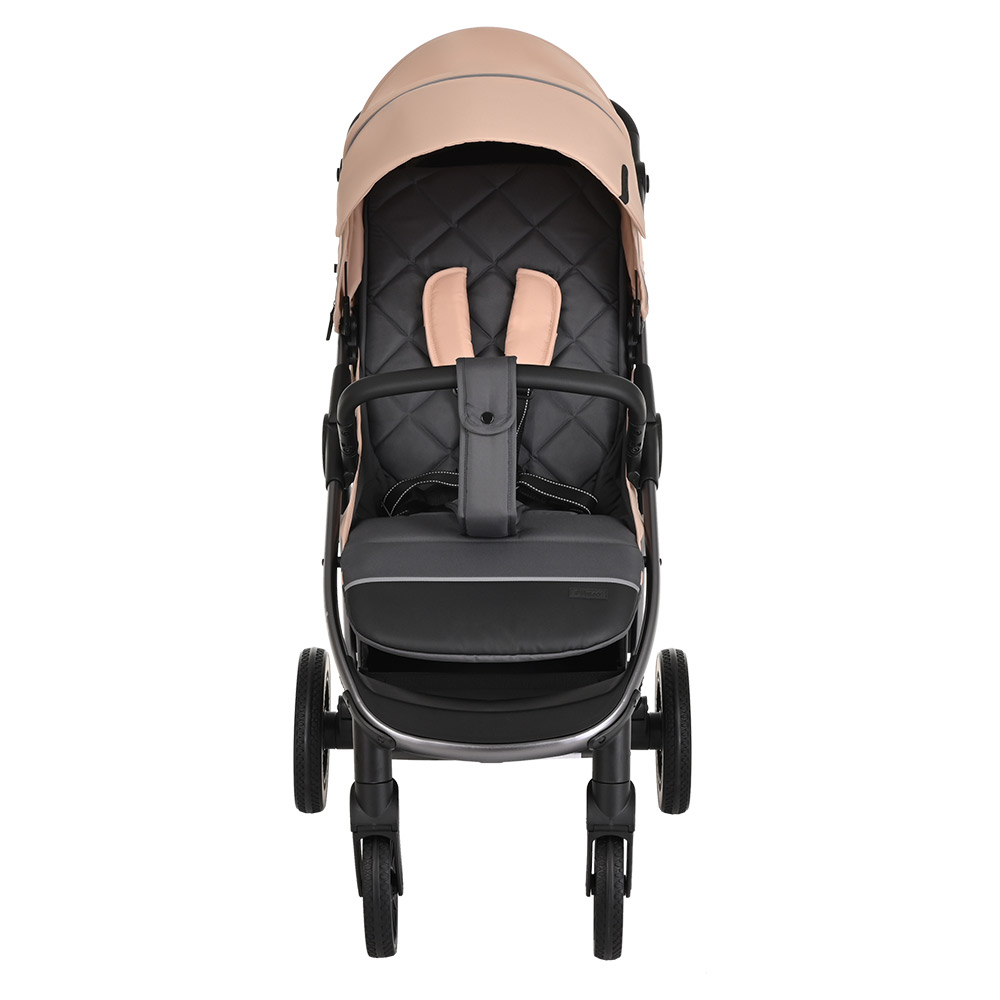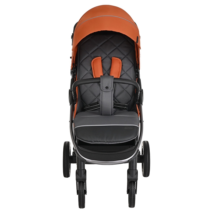 Родительская ручка регулируется по высоте и изготовлена из высококачественной гипоаллергенной экокожи, также как и детский бампер.