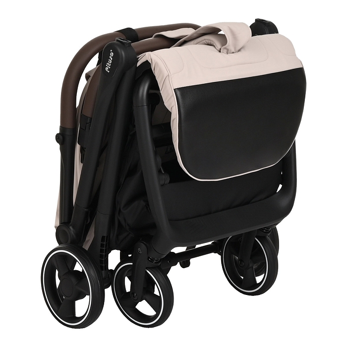 Прочная ручка из эко-кожи приятна на ощупь. Удобная конструкция помогает легко складывать коляску одним нажатием кнопки.
