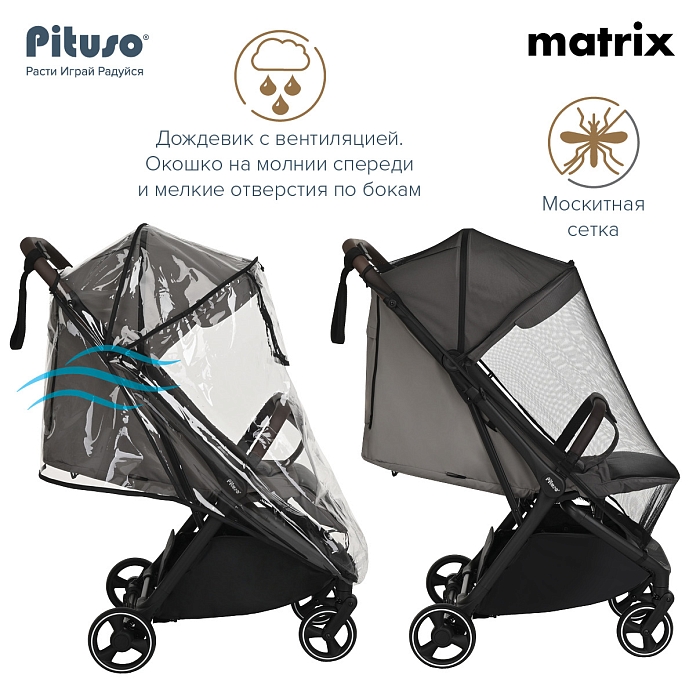 Встречайте MATRIX - самая легкая коляска PITUSO. Это удобная, гибкая и надежная городская коляска, которая едет невероятно мягко и плавно. Легкое маневрирование достигается благодаря небольшим колесам с поворотом на 360 градусов, и даже самые активные маленькие путешественники смогут качественно отдохнуть благодаря раскладывающейся спинке и уютной подставке для ног, что создает как бы оазис для комфортных прогулок.