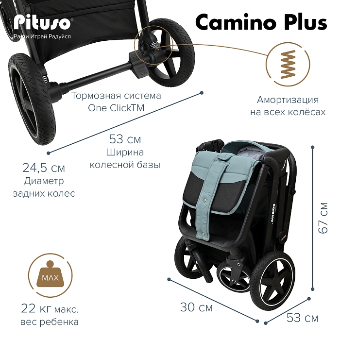 Выбирая прогулочную коляску PITUSO CAMINO Plus, вы выбираете стиль, комфорт и безопасность для вашего малыша. Не упустите возможность сделать каждую прогулку радостью для вас и вашего ребенка!