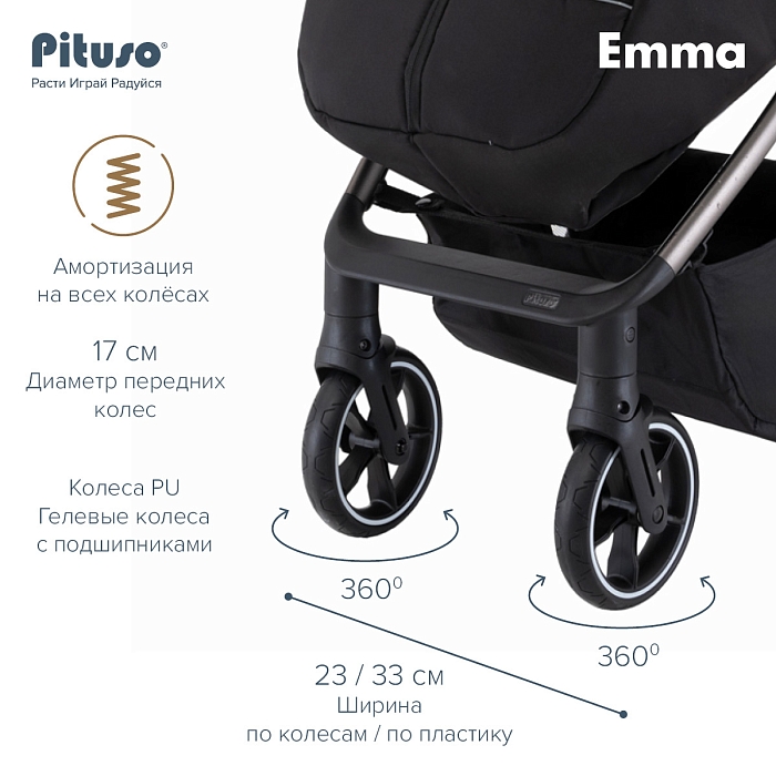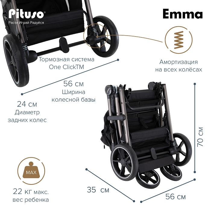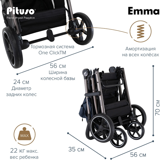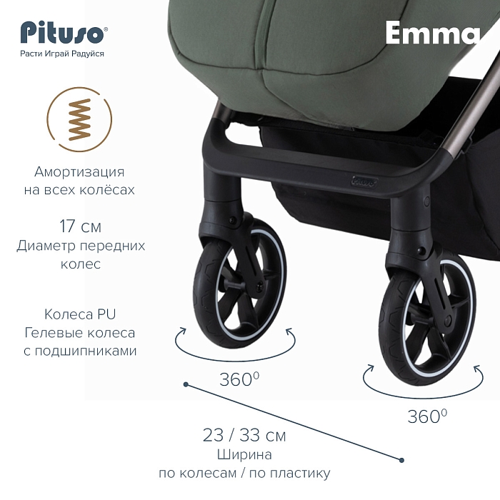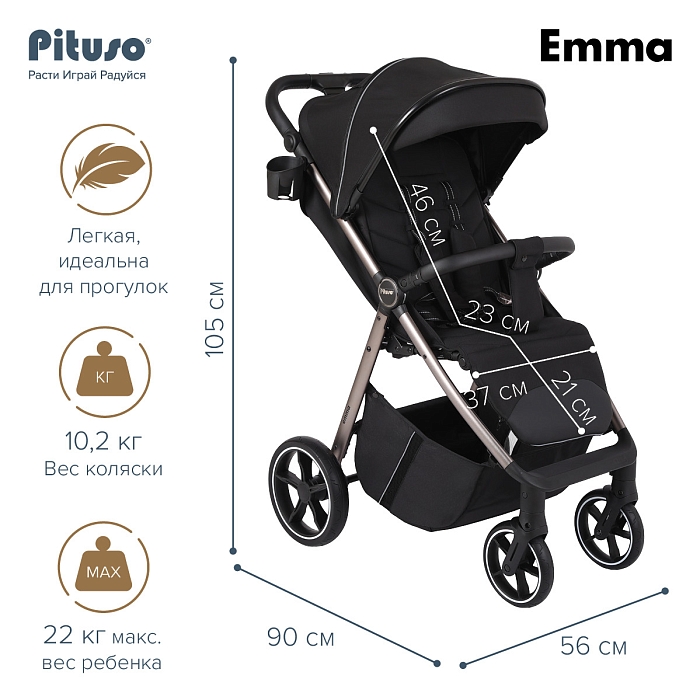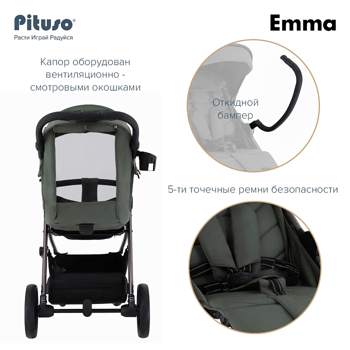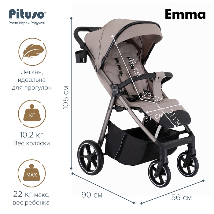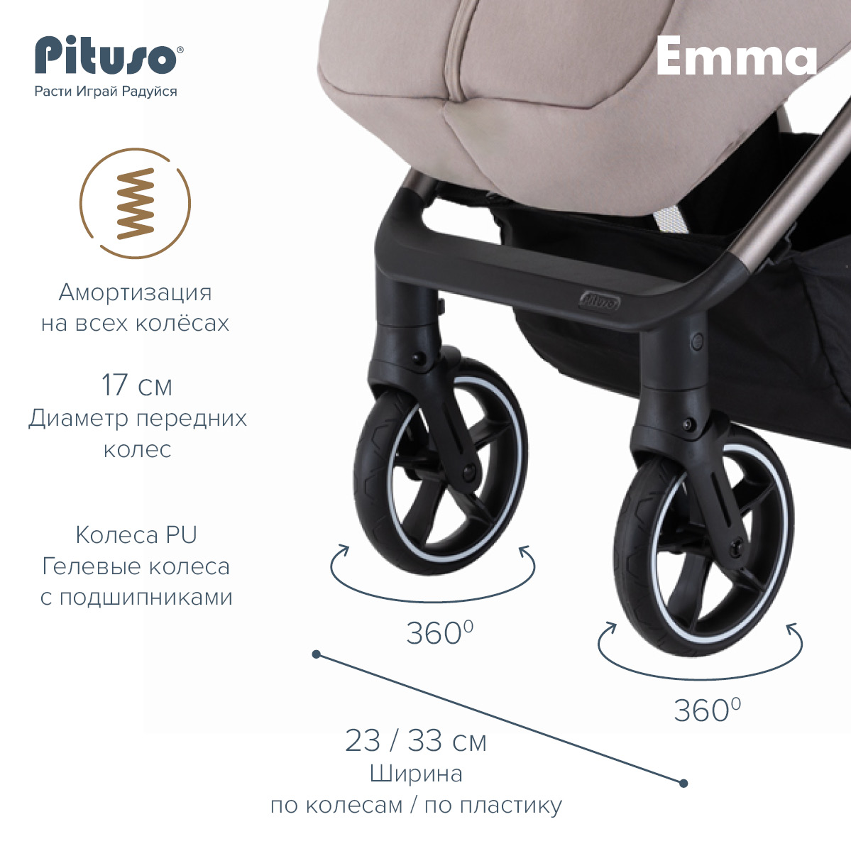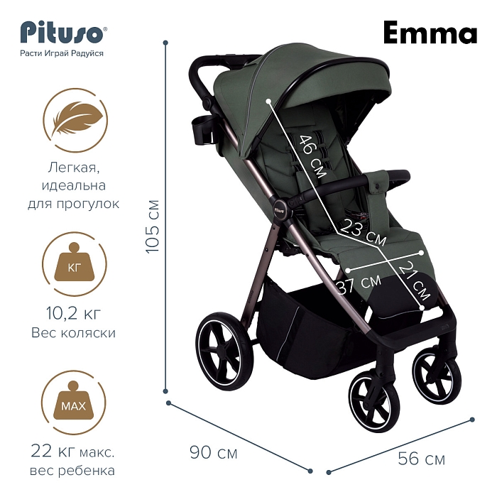 Прогулочная коляска Pituso Emma – качественная и стильная прогулочная модель, идеально адаптирована и для прогулок и путешествий на свежем воздухе, имеет надежную прочную конструкцию. Данная модель представлена в разных расцветках и влюбляет в себя с первого взгляда. Коляска имеет компактный, легкий каркас. Она подарит комфорт и удобство не только ребенку, но и его маме.