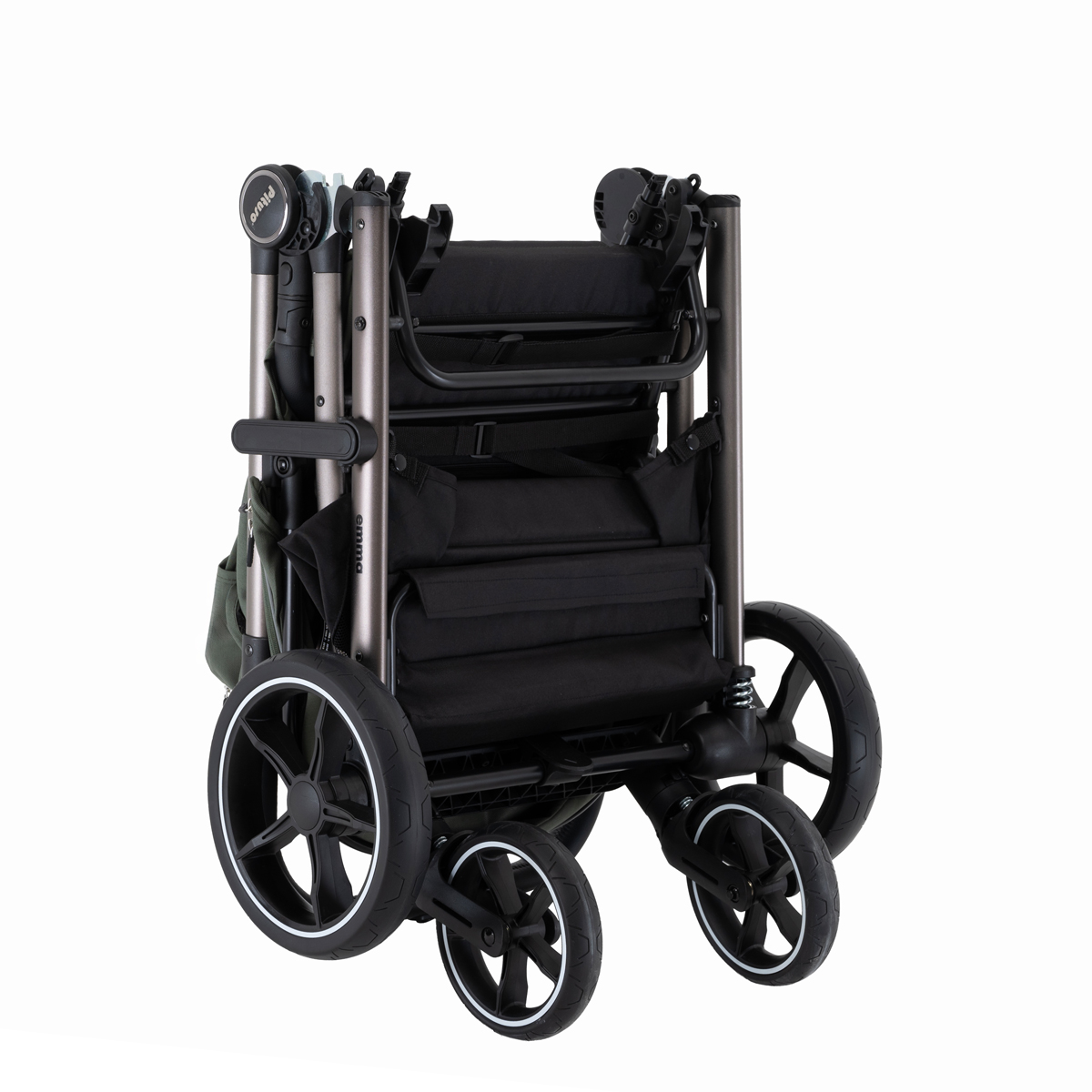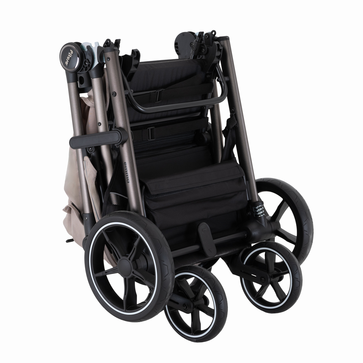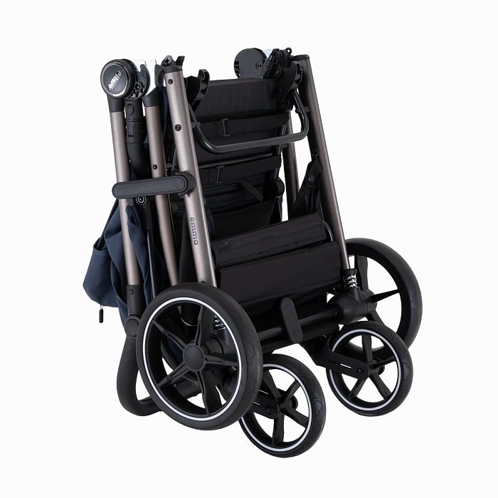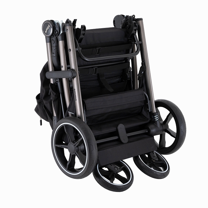 При складывании коляска блокируется от случайного раскладывания и сохраняет вертикальное положение.