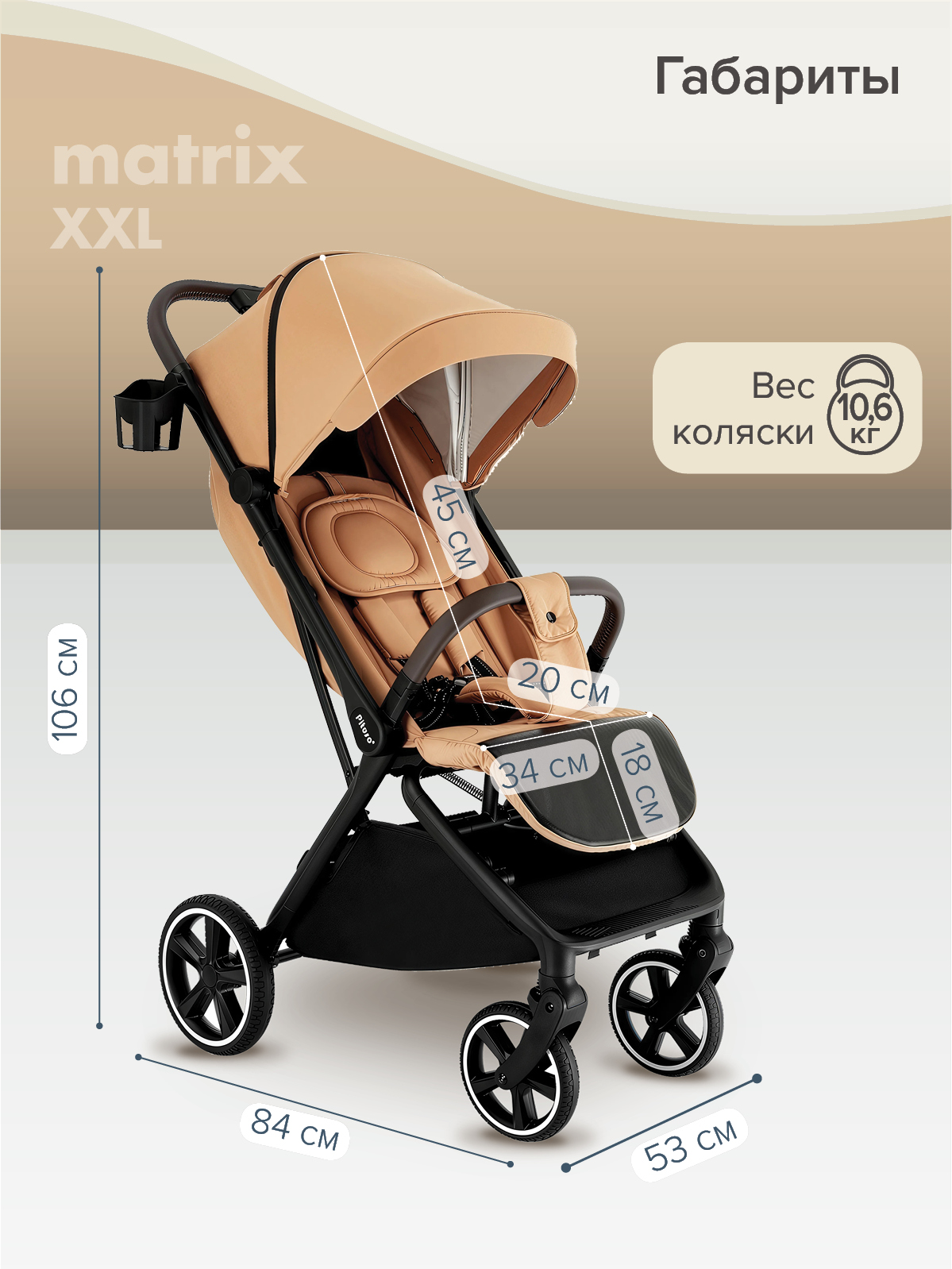 •Размеры сиденья коляски(ДхШ): 84x34 см
