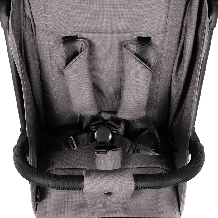 Компактная, функциональная, надежная и стильная коляска верно прослужит долгое время. Даже самый активный малыш в полной безопасности зафиксирован пятиточечными страховочными ремнями с мягкими наплечниками. Спинка легко регулируется с помощью специального ремня, теперь кнопка зафиксирована и позволяет еще легче поменять наклон спинки. На спинке появился карман для мелочей. Чехол на ножки заботливо укроет пяточки, при этом просторная багажная корзина будет легкодоступна. Маневренные колеса (теперь с перфорацией) на подшипниках, с амортизацией обеспечат плавный ход. Глубокий капюшон прекрасно защитит от солнца и осадков, есть дополнительная секция для увеличения капора, смотровое окошко на магните.
