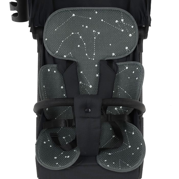 Рама- Carbon, колеса PU, прогулочный блок, бампер, мягкий вкладыш, чехол на ножки, подстаканник, сумка для переноски, корзина, страховочный ремешок.