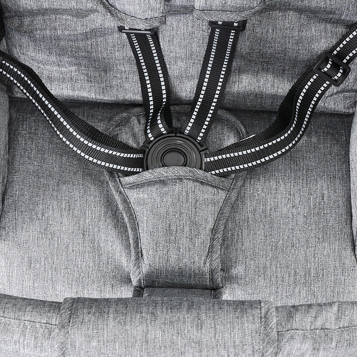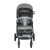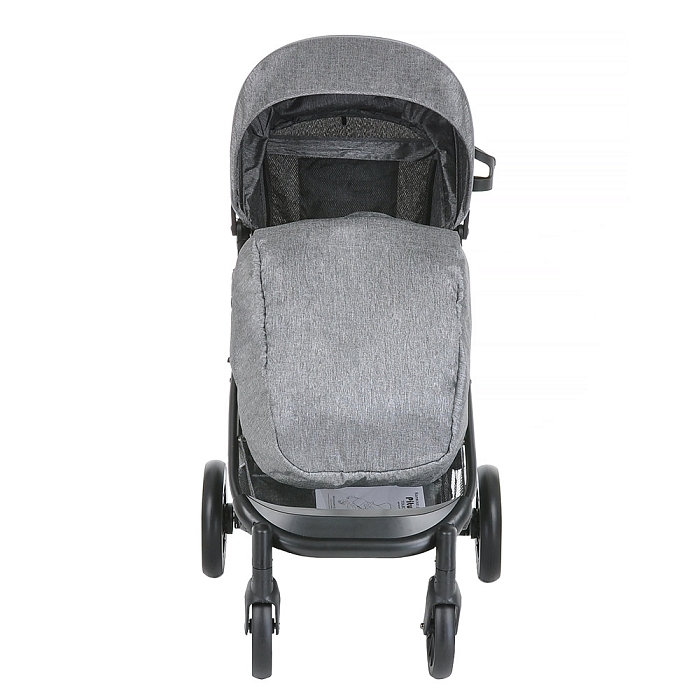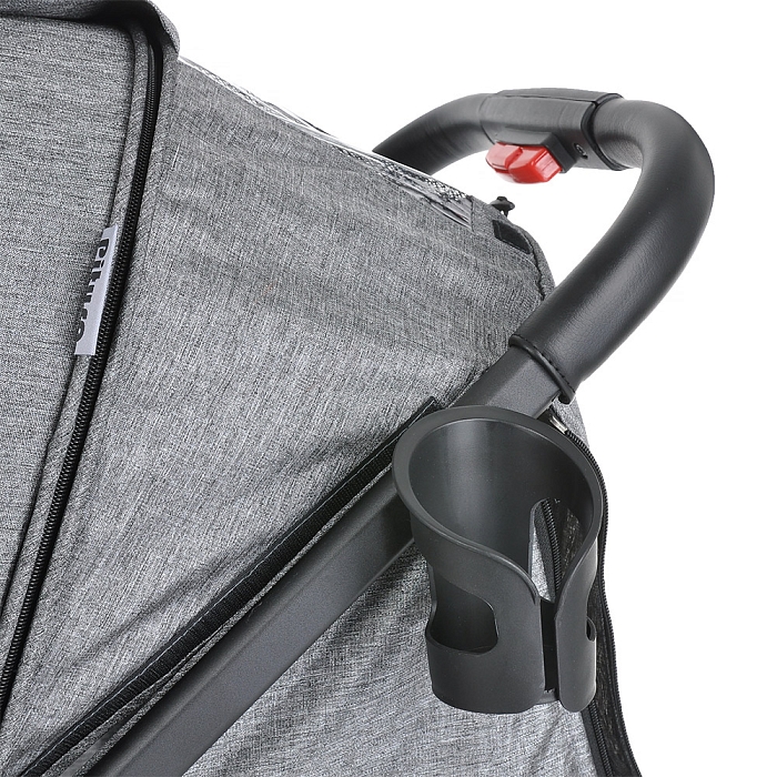 У подножки предусмотрены два положения регулировки. Капор бесшумно регулируется в 3-х положениях, его объем увеличивается благодаря дополнительной секции на молнии, также есть козырек от солнца. В раскрытом состоянии капор практически полностью закрывает верхнюю часть коляски. Коляска отвечает всем требованиям безопасности: 5-ти точечный ремень с мягкими накладками, дополнительной паховой защитой и защитным бампером. В комплектацию коляски входят накидка на ноги и подстаканник.