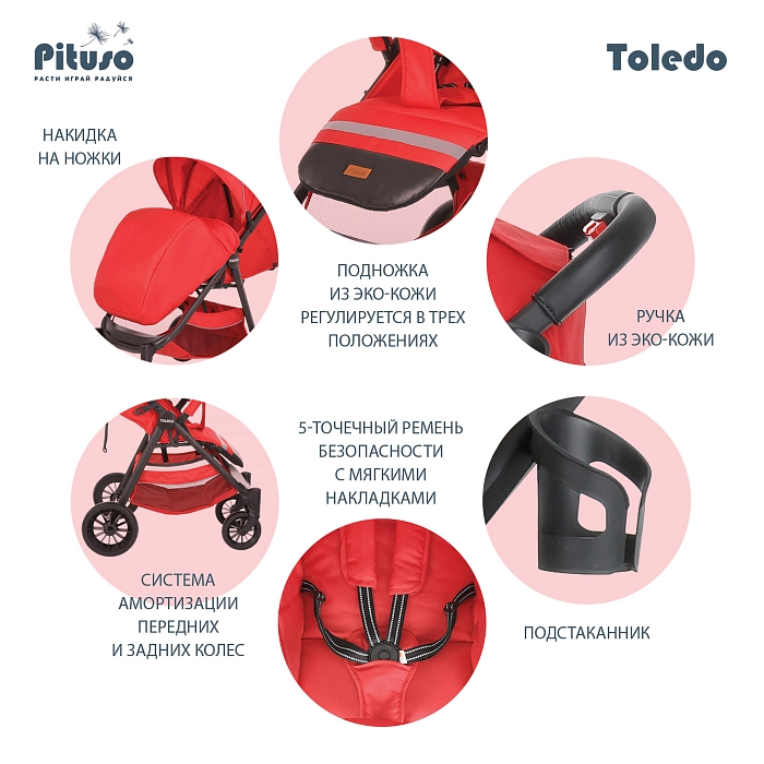 Прогулочная коляска Pituso Toledo колеса EVA Red/Красный