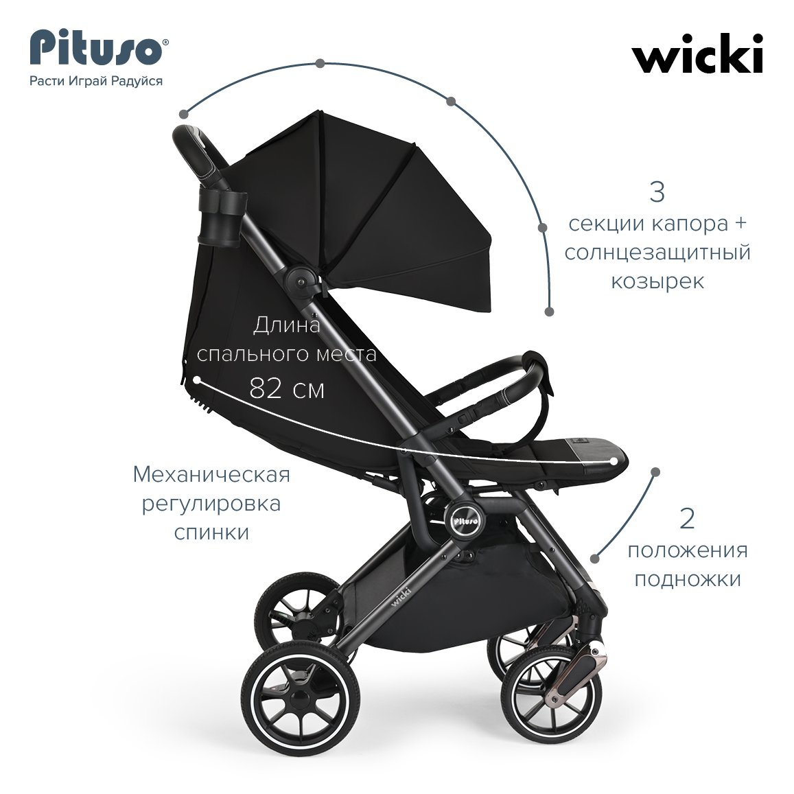 Прогулочная коляска Pituso Wicki Graphite/Графит