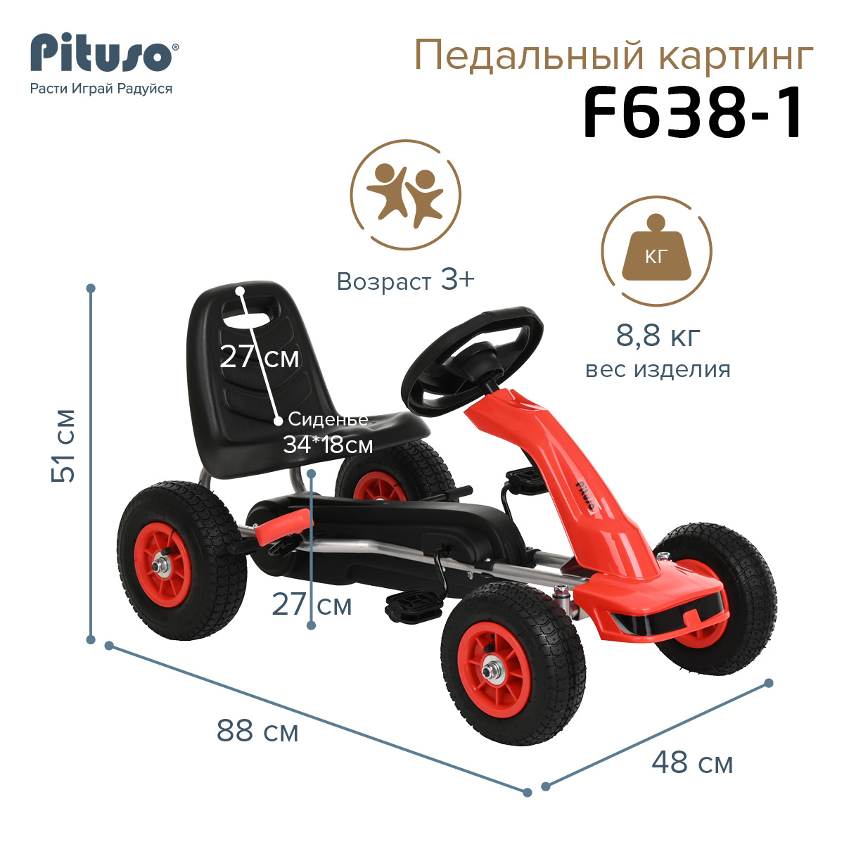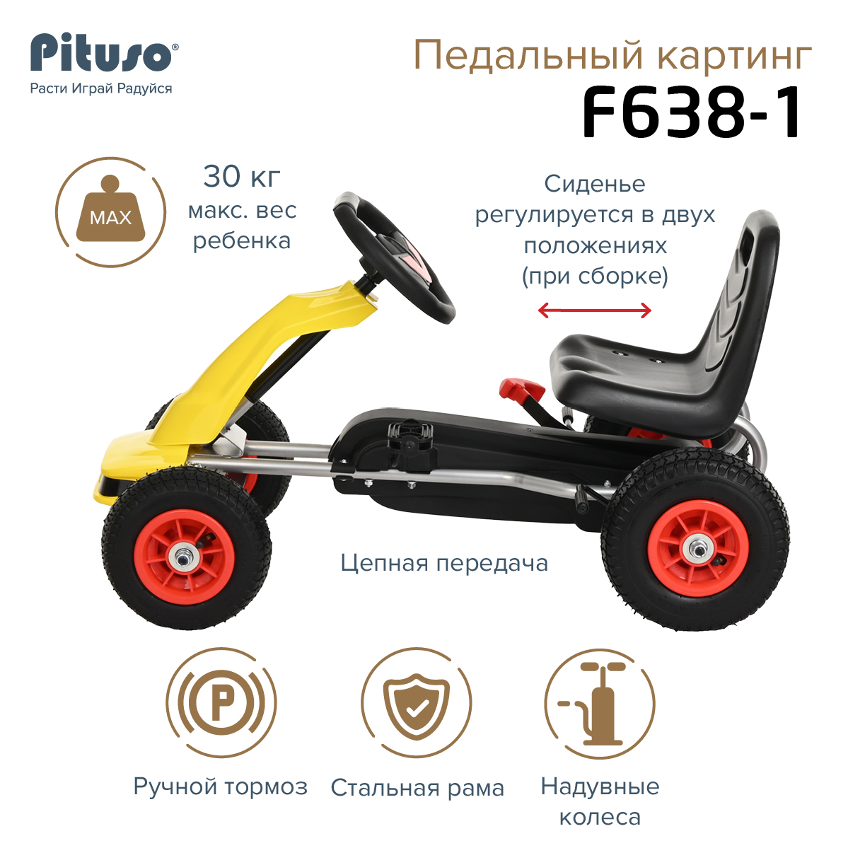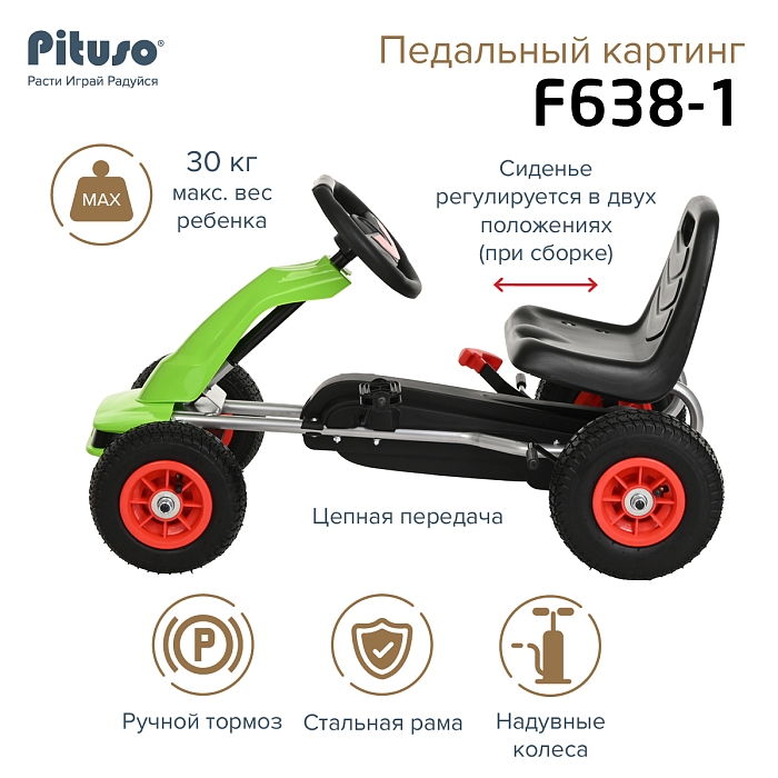 Педальный картинг Pituso F638-1- это прекрасное сочетание велосипеда и автомобиля.