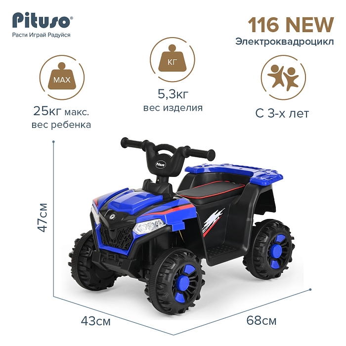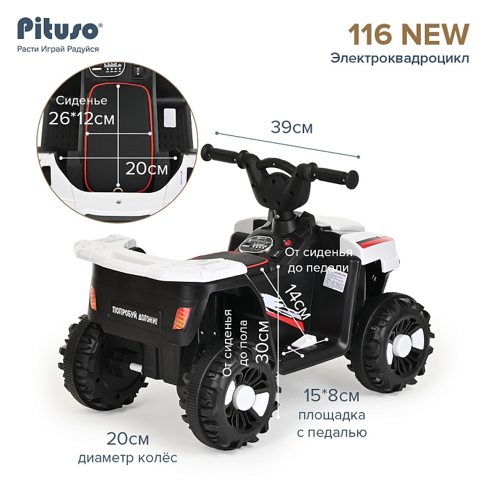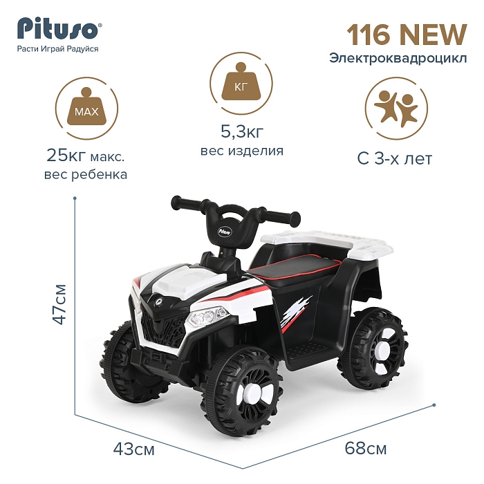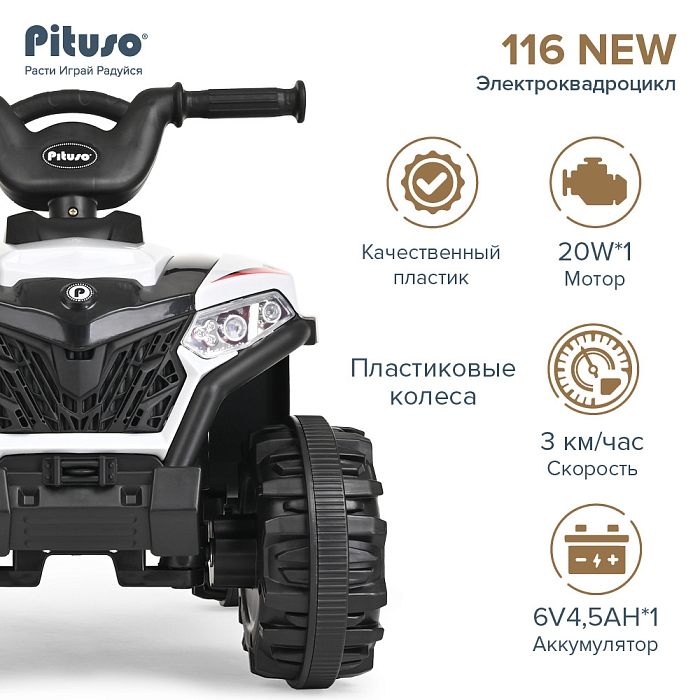 Электроквадроцикл Pituso 116-NEW 6V/4.5Ah,20W*1 White/Белый
