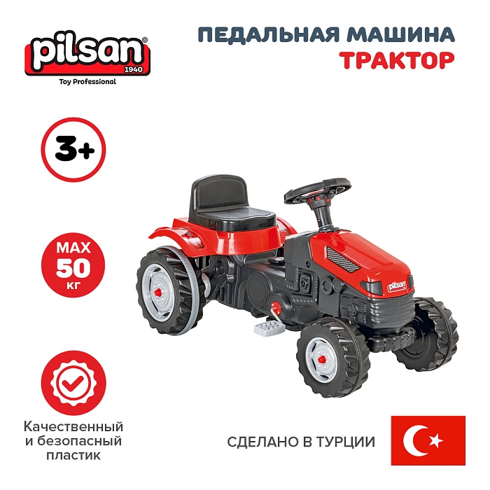 Педальная машина Pilsan Трактор Red/Красный