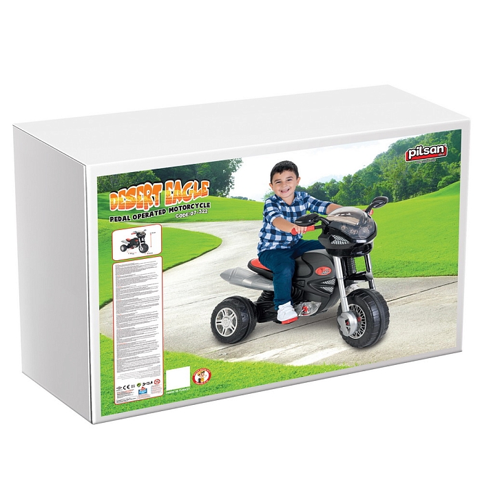Детский педальный мотоцикл Desert Eagle может похвастаться плавными линиями и реалистичным дизайном настоящего спортивного транспортного средства.