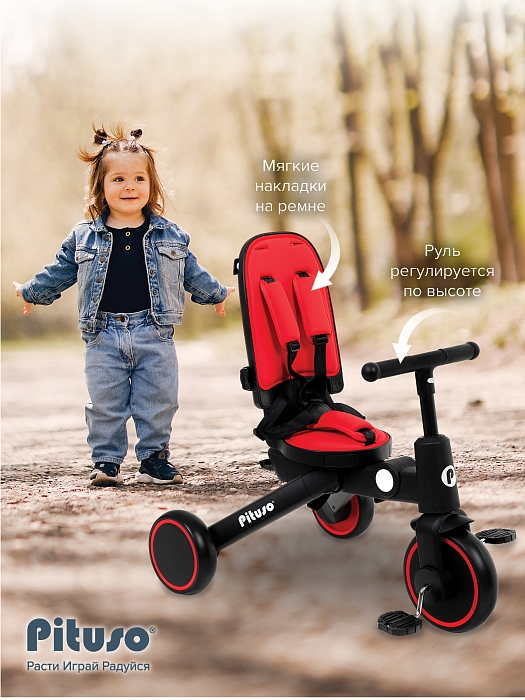 Велосипед трехколесный Pituso Leve Pro с сумкой Red/Красный