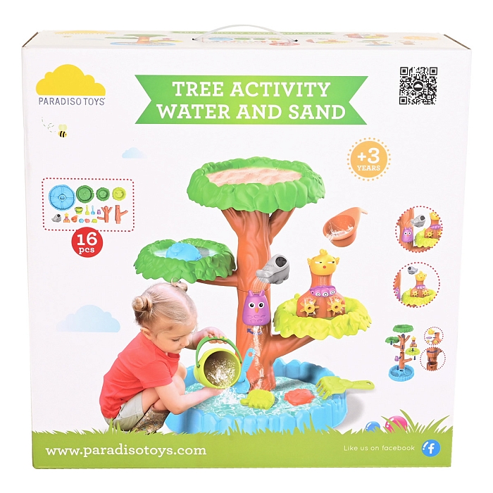 Состав: Основной элемент в виде дерева – 1 шт., лопатка- 1 шт, грабельки-1 шт., ведерко-1шт, ковш-1шт., мельница-2 шт, лейка-1 шт., формочки-3 шт.