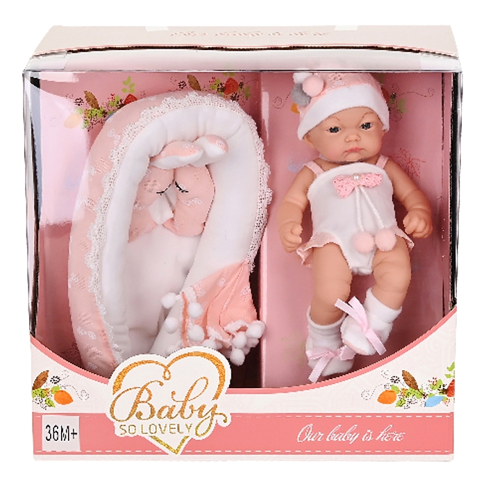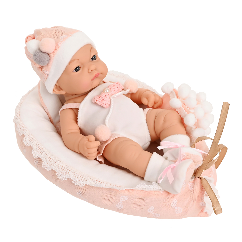 В комплекте: Пупс в одежде -1 шт., подушечка-1 шт., матрасик-1шт, платочек-1шт.