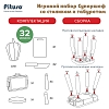 В набор входят: стол-чемоданчик-1 шт., табурет-1 шт., доска-1шт., ножик деревянный (имитация)-2 шт, фрукты и овощи-19 шт.