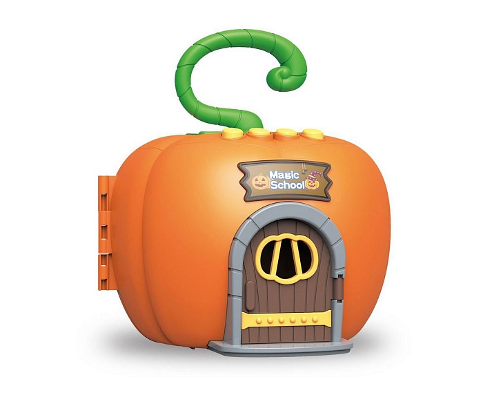 Небольшой, но уютный домик в виде тыковки с маленькими деовчками-ведьмочками и монстриками станет отличным подарком для ребенка.