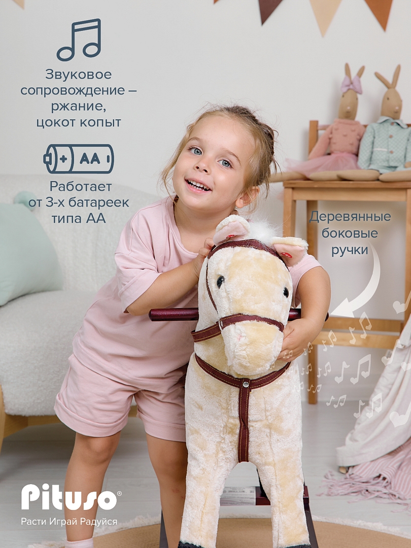 - Мягкая шерстка из плюша, грива и хвост с длинным ворсом,