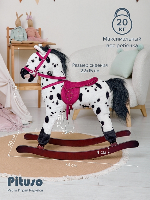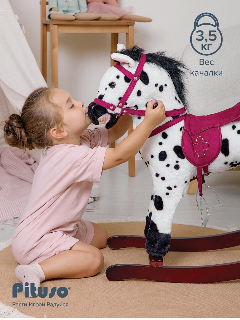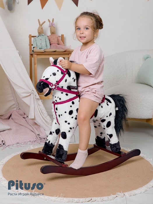 Качалка-лошадка Pituso белый с чёрными пятнами