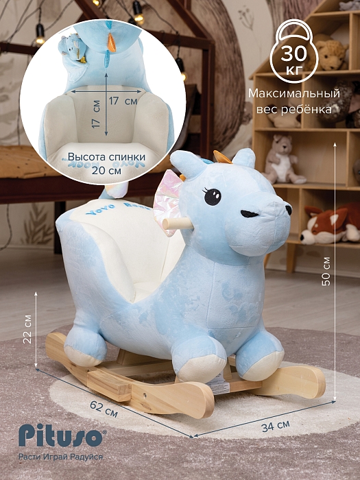 Детская качалка Pituso – это уникальная деревянная игрушка, которая станет любимой для вашего малыша. Помимо развлекательной функции качалка помогает развивать координацию и вестибулярный аппарат, а также ловкость, воображение и фантазию в игровой форме.