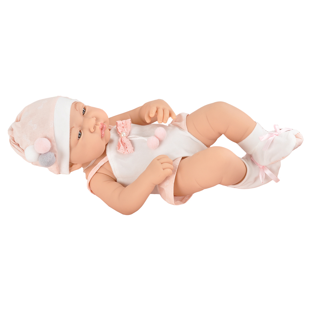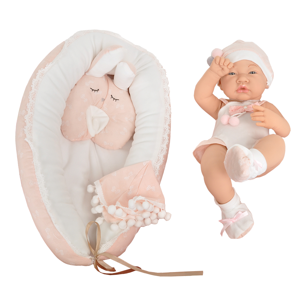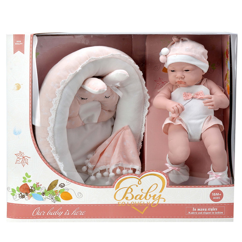 В комплекте: Пупс в боди, шапочке и носочках- 1 шт., матрасик-кокон – 1 шт., подушечка-1шт., платочек - 1 шт.