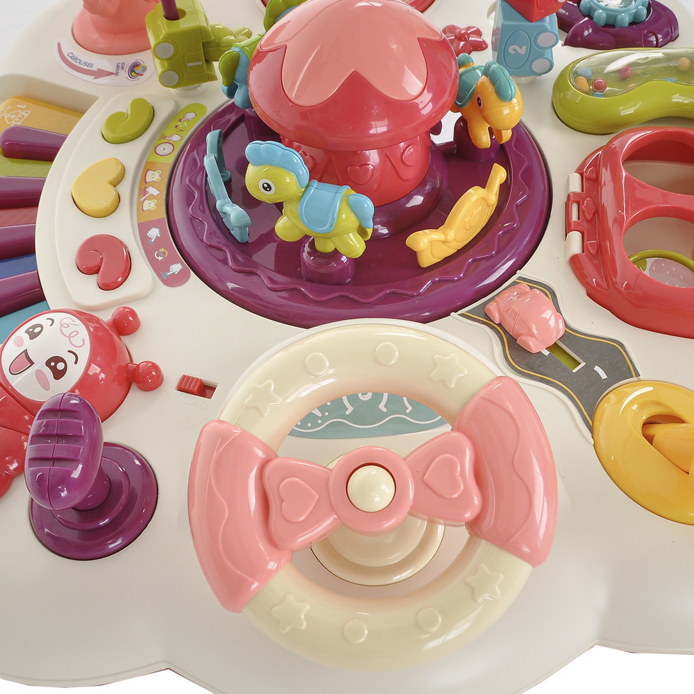 Детский игровой развивающий столик Карусель- это музыкальная развивающая игрушка, которая привлечет к себе внимание малыша яркой столешницей, а множество различных интересных элементов позволят столику надолго остаться любимой игрушкой ребенка.