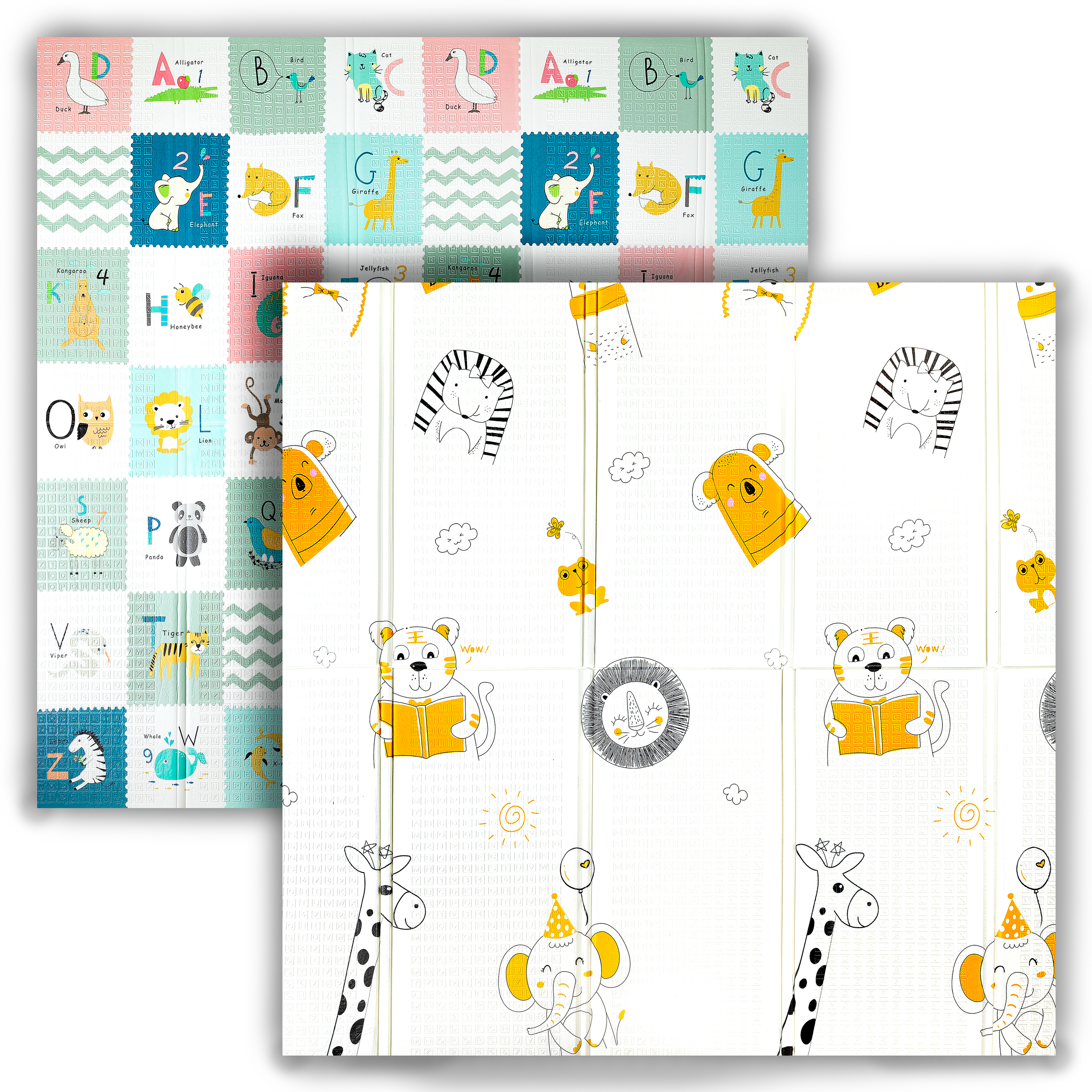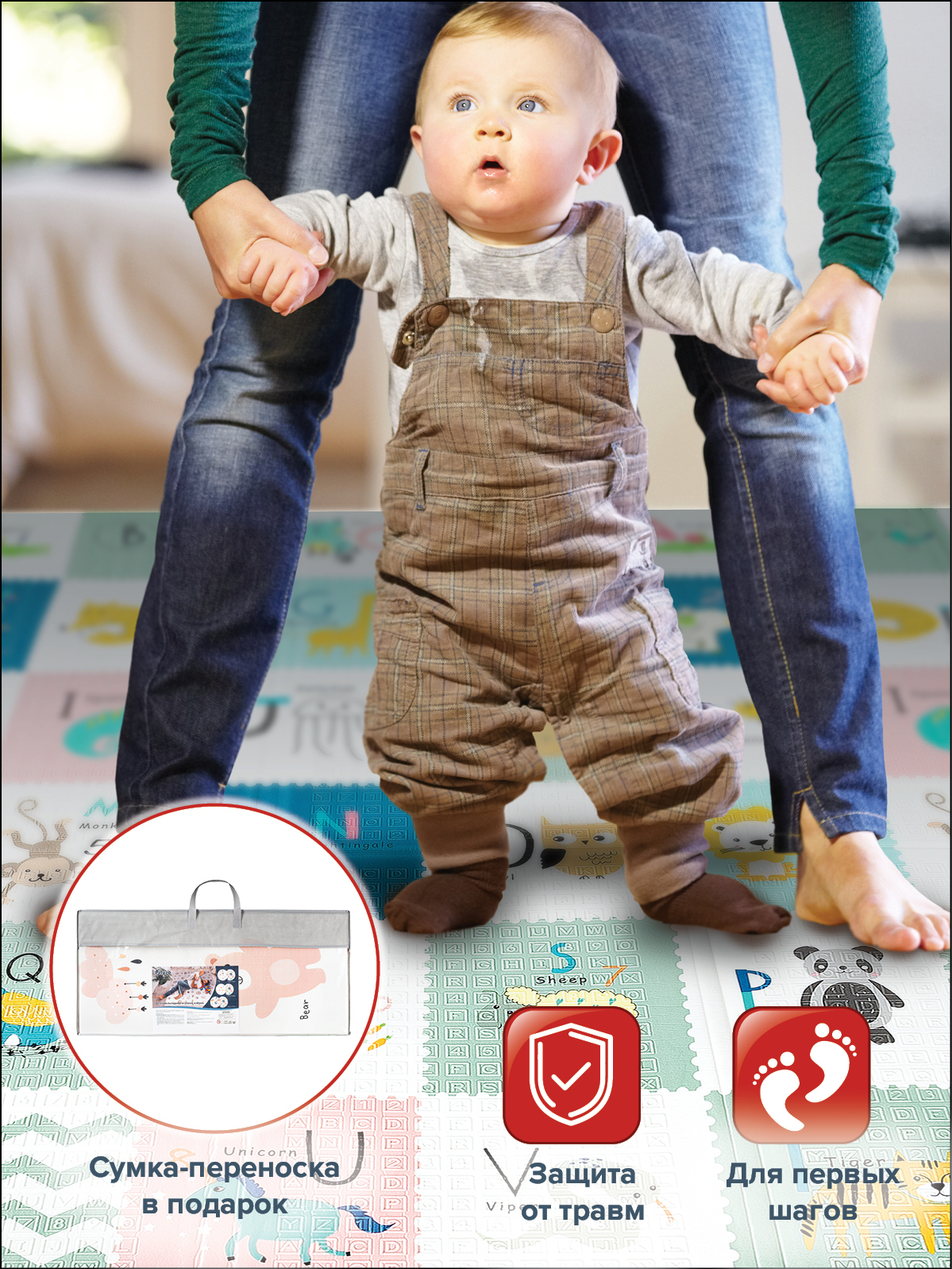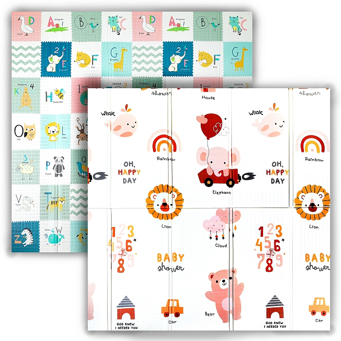 Игровой коврик с обеих сторон украшен милыми узорами, которые пробуждают любопытство и стимулирует малышей к изучению окружающего мира. Достаточно просто перевернуть коврик на другую сторону и ваш малыш заново увлечен. Родители могут вместе с малышом лежать, играть на коврике, ведь он очень большой, места хватит всем!