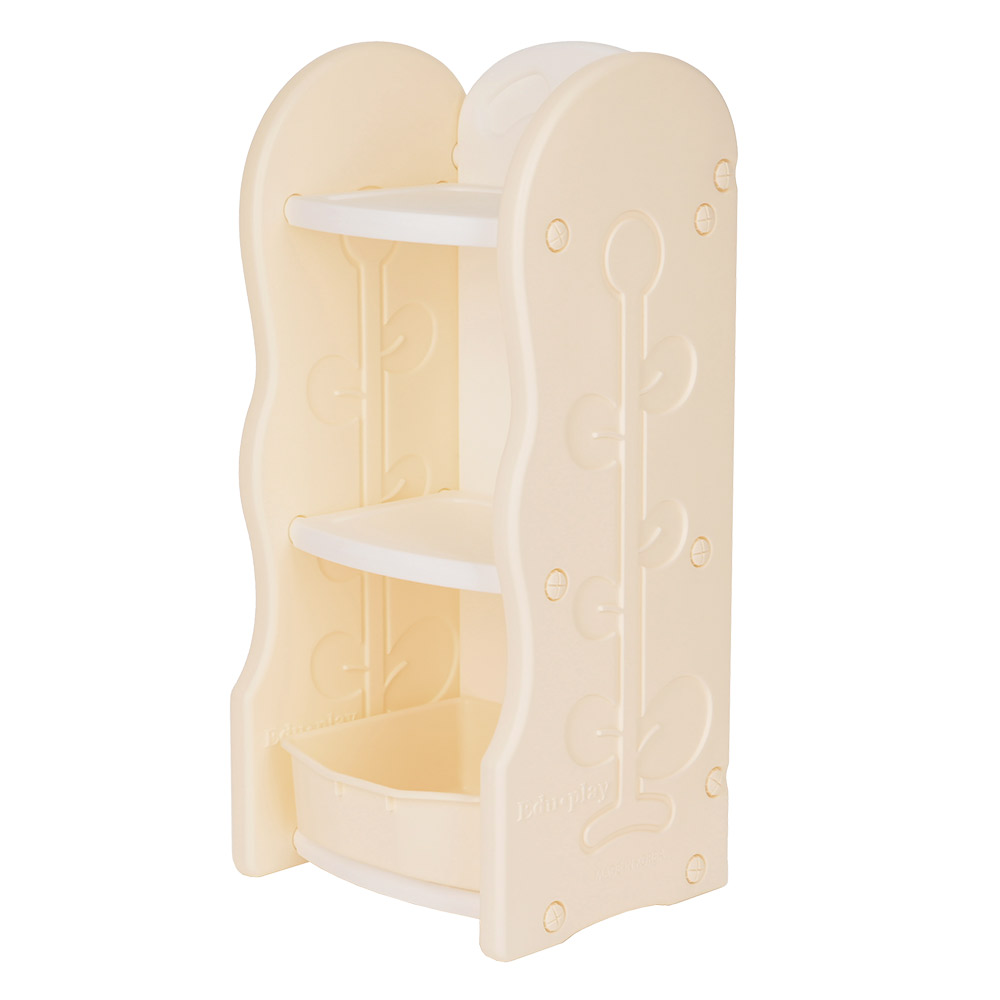 - Приятные светлые оттенки стеллажа помогут ему легко вписаться в интерьер детской.