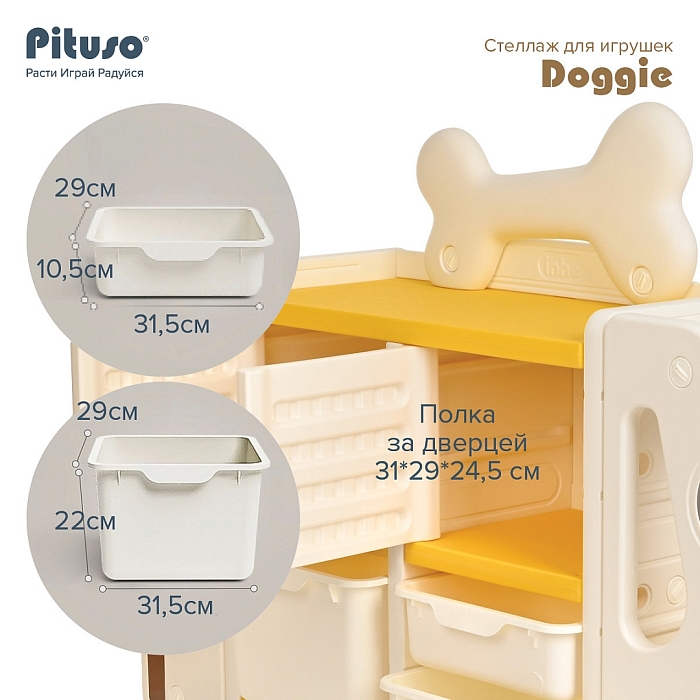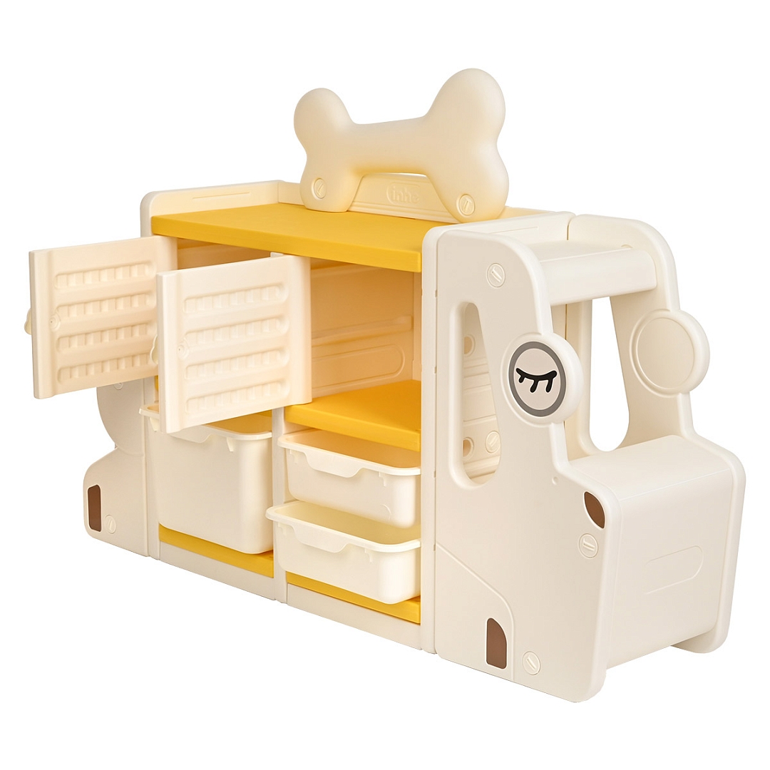 PITUSO Стеллаж для игрушек с ящиками Doggie,Beige/Бежевый+желтый,125*33*89h