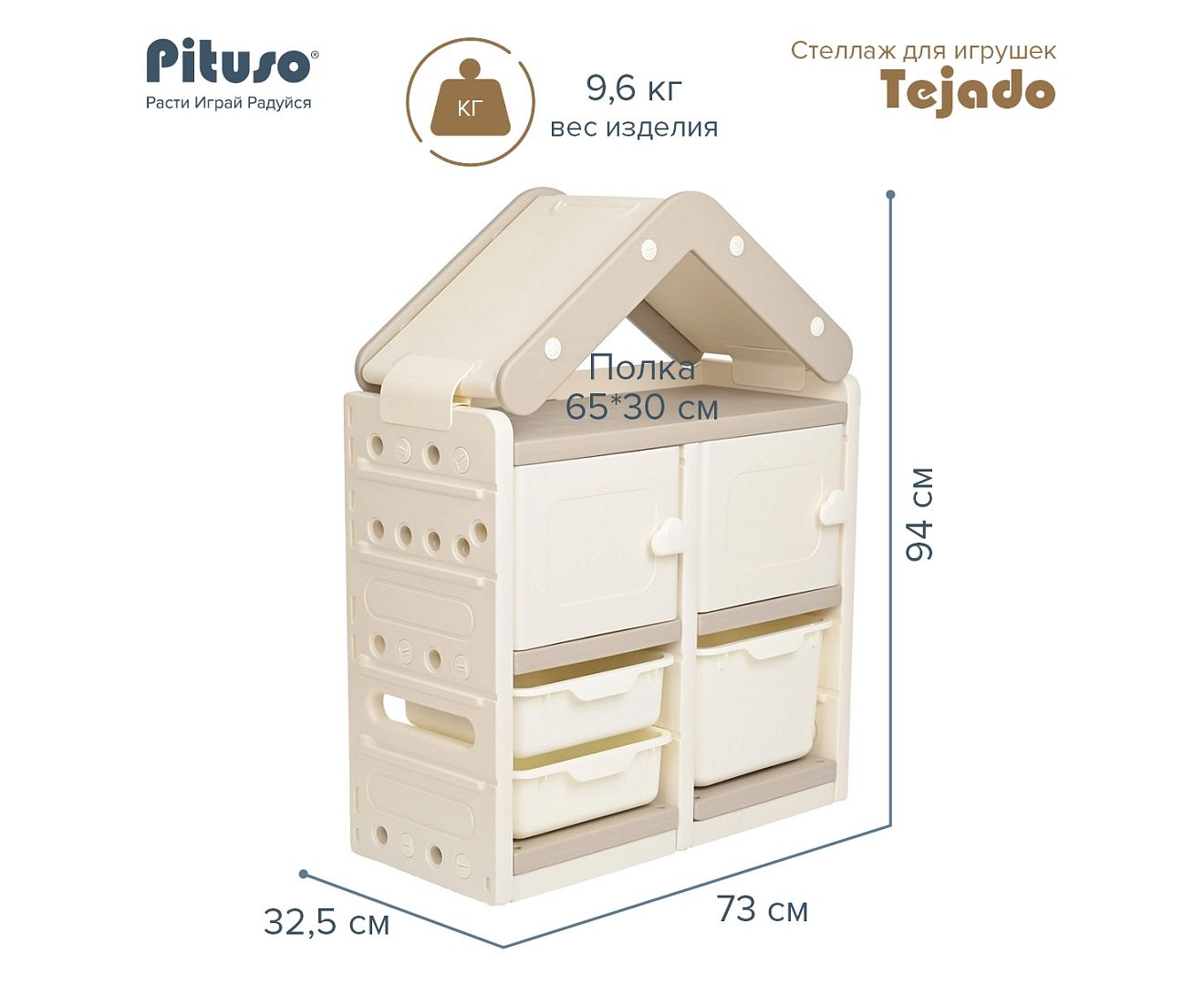 PITUSO Стеллаж для игрушек с ящиками Tejado,Beige/Бежевый, 73*32,5*94h