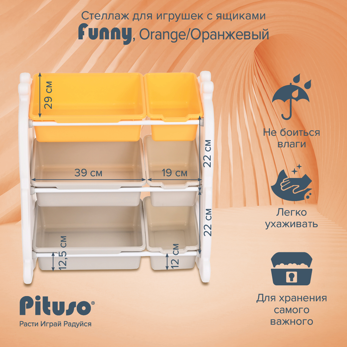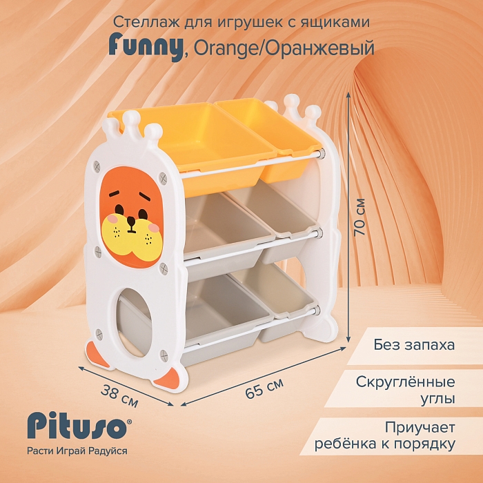 Стеллаж для игрушек Pituso с ящиками Funny 3 полки Orange/Оранжевый
