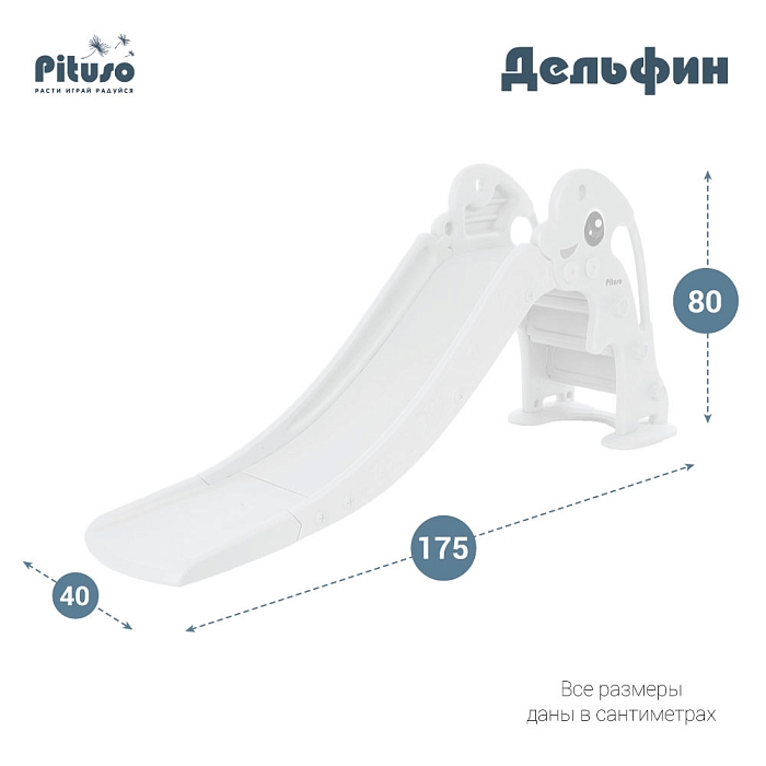 Длина ската-155 см, ширина ската -32 см, высота горки (начало ската) - 55 см.