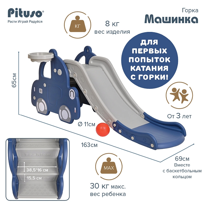 Горка Pituso Машинка с баскетбольном кольцом Blue/Синий