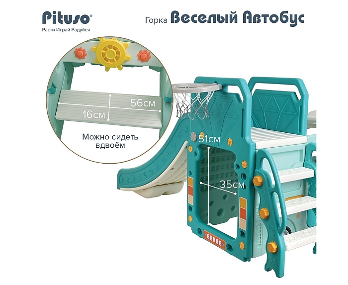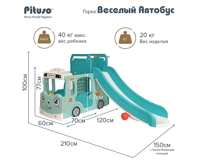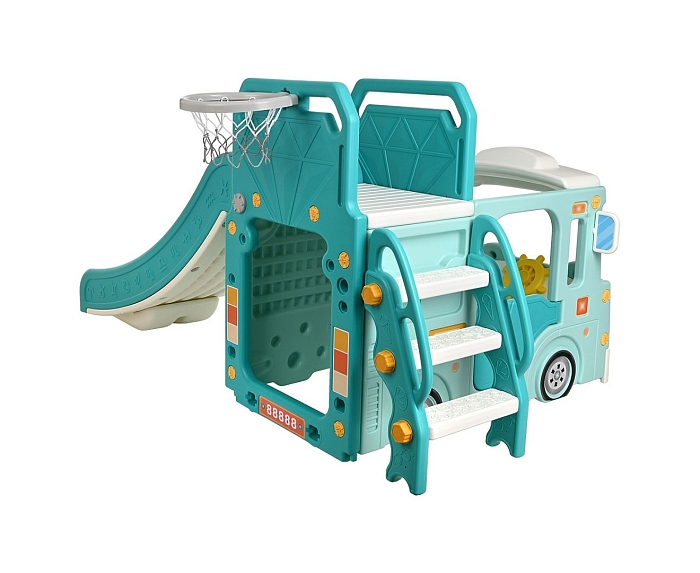 PITUSO Горка Веселый Автобус с баскет.кольцом Green/Бирюзовый,210*150*100h