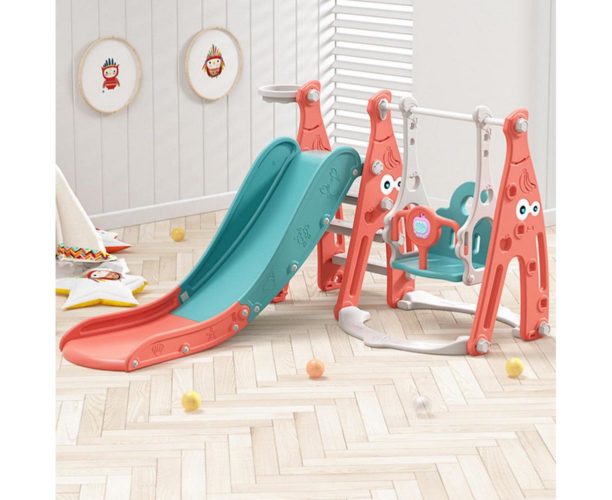 Комплектация: пластиковая горка, качели, кольцо баскетбольное (1 шт.)., муз.элемент