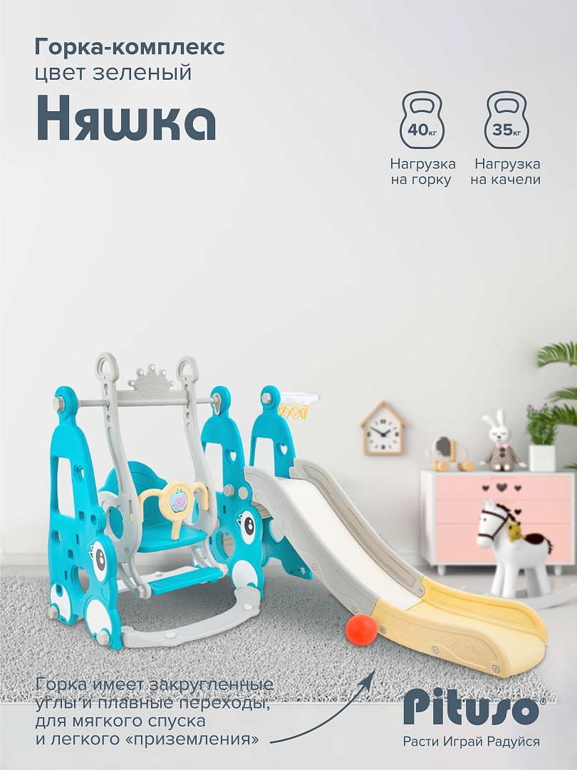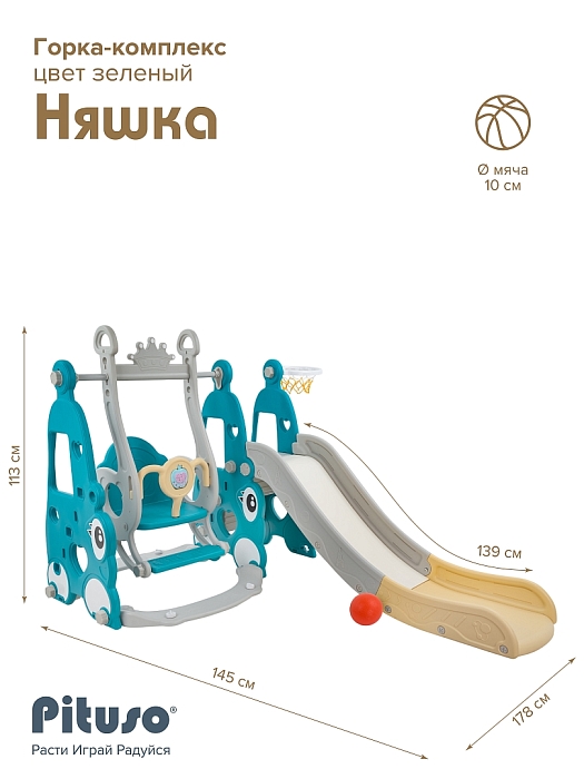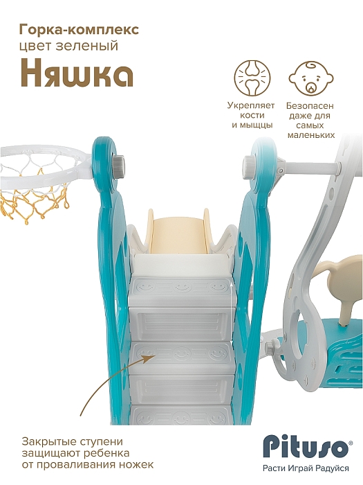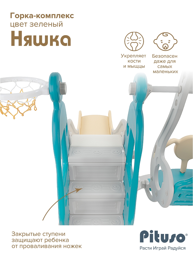PITUSO Горка-комплекс Няшка (горка, качели, баскет. кольцо) Green/Зеленый,145*178*113 см