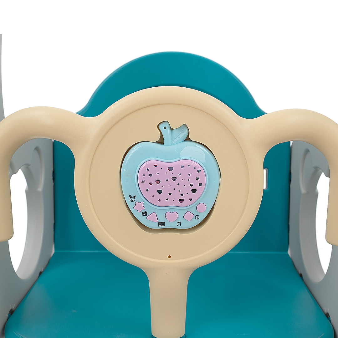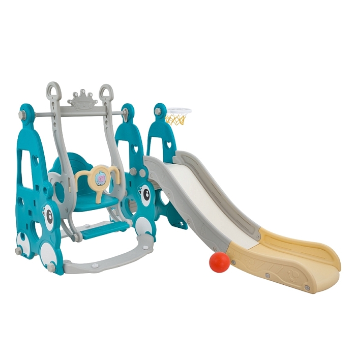 Комплектация: пластиковая горка, качели, кольцо баскетбольное (1 шт.)., муз.элемент