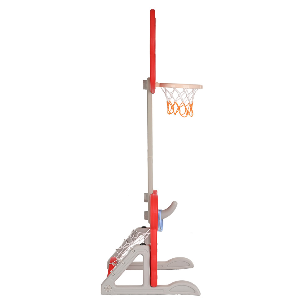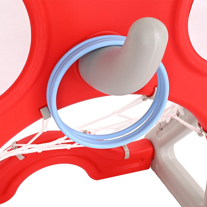 Одна игрушка сочетает в себе несколько вариантов времяпровождения: игра в баскетбол, игра в футбол, игра в гольф, игра с кольцебросом.