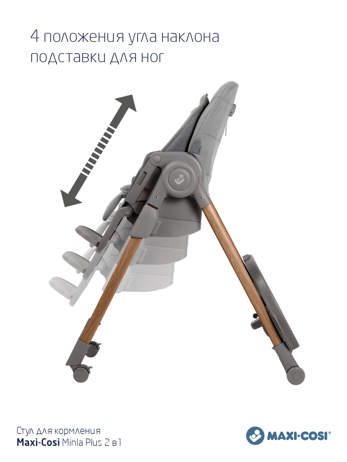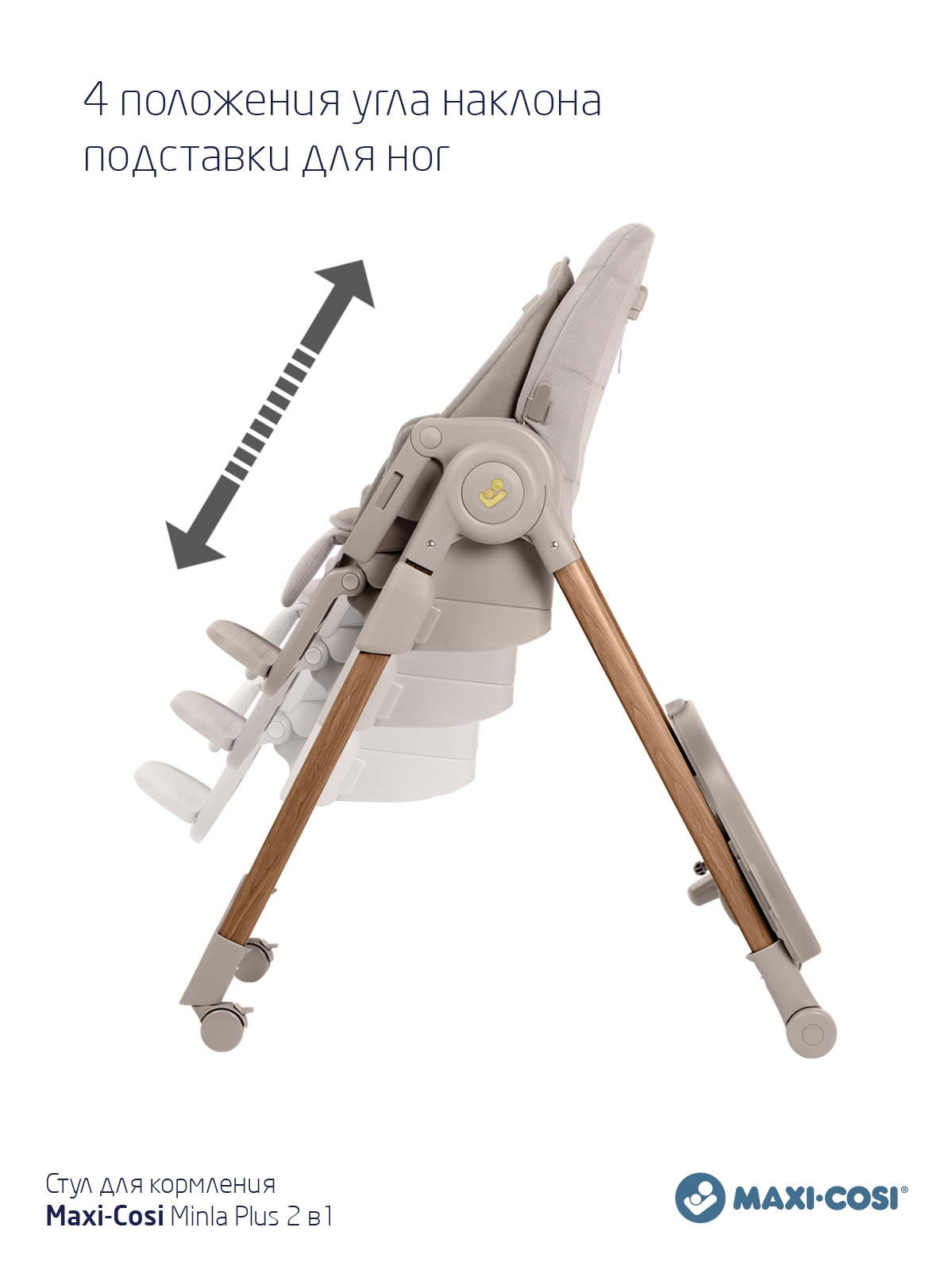 Благодаря полностью регулируемой конструкции, включающей несколько положений спинки, подноса, подставки для ног, Minla Plus обеспечивает максимальный комфорт за столом на протяжении всего периода использования с рождения и до 14 лет.