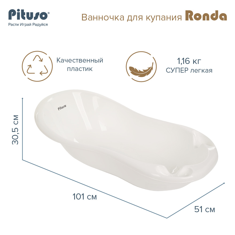 Детская ванна Pituso Ronda со сливом и термометром 101 см Белый